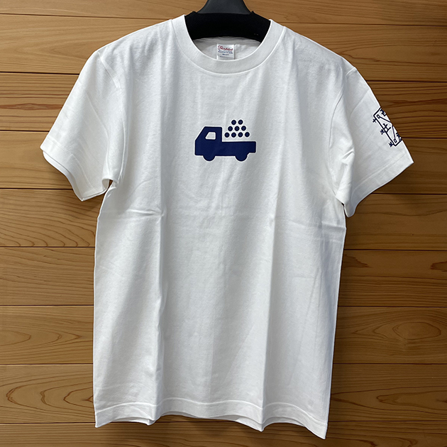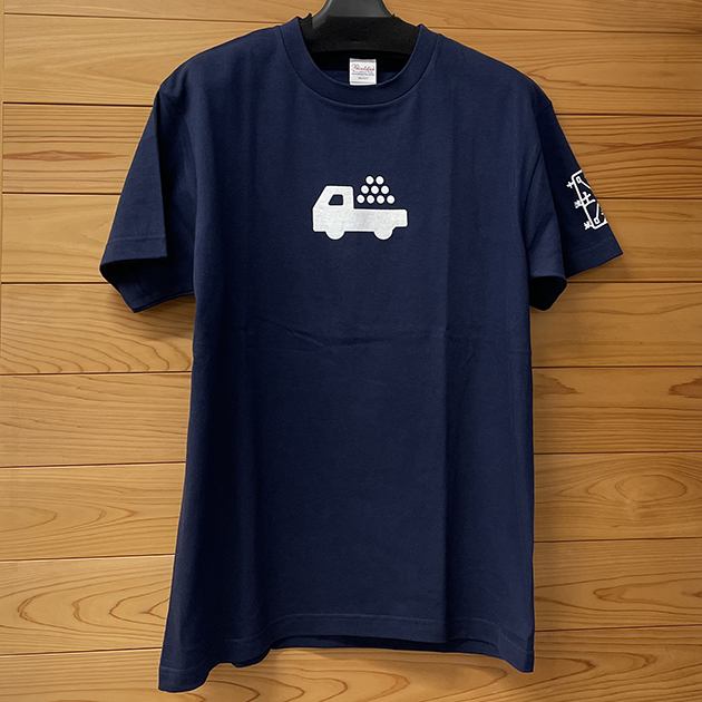 よって西土佐の直売所「水々しい市場」にも、毎朝、地元の出荷者さんが軽トラにのって、新鮮な農産物をもってきてくれています。そんな日常の風景をモチーフにしたのがこのTシャツです!背中の部分に道の駅のロゴ、左腕の部分に「西土佐産」のマークが入っています!