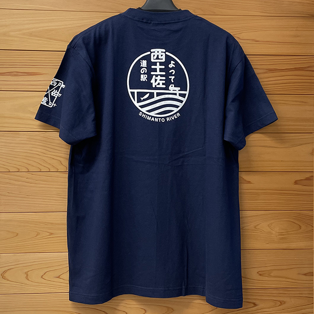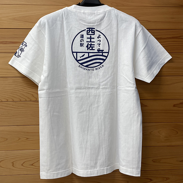 この商品は、道の駅よって西土佐のロゴがバックプリントとして入っています!左腕の部分に「西土佐産」のマークが入っています!